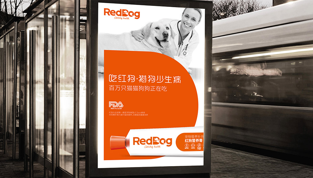 加入有節(jié)奏的貓狗叫聲后,仿佛給品牌注入了聲音的魔力,從聽覺維度大大增加了品牌的識(shí)別度和記憶度。 包裝:立體嵌入品牌+細(xì)節(jié)設(shè)計(jì) 在包裝的優(yōu)化中,我們特別考慮了每個(gè)產(chǎn)品的功能及使用體驗(yàn),用更直觀的圖形化元素提升品牌的精致度與親和力。使用過程中的傳播設(shè)計(jì),我們加強(qiáng)了品牌各個(gè)觸點(diǎn)的立體嵌入。 傳播:聚焦傳播營養(yǎng)膏品類+獸醫(yī)專家信任狀 在主要的傳播畫面中,我們建議聚焦傳播”營養(yǎng)膏“的膏管,搶占品類的第一視覺認(rèn)知。同時(shí),RedDog得到眾多臨床獸醫(yī)認(rèn)可和推薦,所以我們也提取了一些專家背書的視覺元素,傳播獸醫(yī)與健康貓狗互動(dòng)的畫面,打造RedDog更專業(yè)、品質(zhì)感更強(qiáng)的品牌印象。